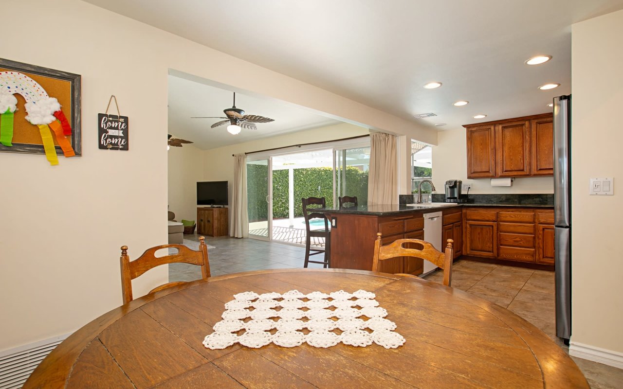 Welcome to this stunning Simi Valley home perfect for families and entertaining. This home features 4 spacious rooms, 2 bathrooms, and a large pool for those hot summer days. Just as you enter, the home has a very open concept flowing from the living room, dining room, kitchen, breakfast nook, family room, and all the way out to the backyard. The sliding doors from the family room opens up completely for that smooth flow between the inside of the home and outside towards the pool. Perfect for entertaining and a feature you find in many luxury homes! The pool also comes with detachable fencing to keep pets and children safe. The kitchen offers granite counters and a customized bay window to overlook the backyard as you monitor little children or observe guests as you entertain. The backyard is also accessible through the master bedroom which offers a nice view of the pool and turf area of the home. This home is incredibly spacious, cozy, and well designed for family or entertaining purposes. The home includes a leased solar from Tesla at $145/month and provides electricity savings. The lot is also positioned so that you have a fabulous view of the mountains right from the living or dining room windows. Tons of natural lighting and nestled in a quiet and safe neighborhood. It's an incredible house you really DO NOT want to miss!
